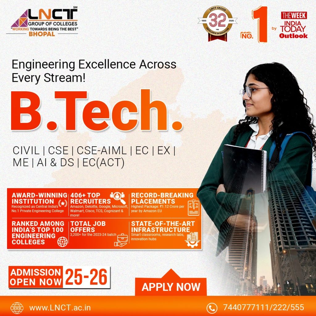 LNCT Group of College is one of the Top engineering college in Bhopal, MP and Central India. LNCT Synonymous with excellence in higher education with 32+ Years of Academic Excellence and Discipline.