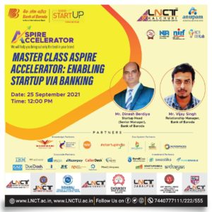 Kalchuri LNCT Group Incubation Centre (KLIC-LNCT) & Anupam Incubation & Innovation Centre (AIIC-LNCTU) is organizing Master Class Aspire : Enabling Startup Via Banking. 25 Sept