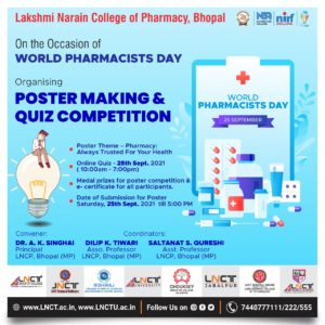 LNCP Bhopal on the occasion of “World Pharmacists Day” Organising “Poster Making & Quiz Competition” Poster Theme – Pharmacy : Always Trusted for your Health