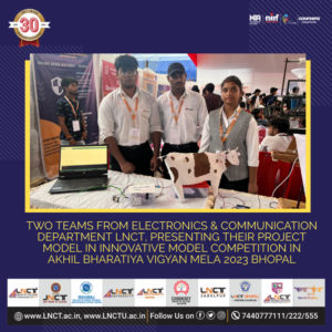 Two teams from the Electronics & Communication Department at LNCT University proudly presented their project models at the Innovative Model Competition during the Akhil Bharatiya