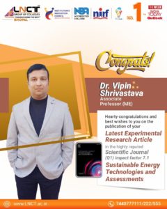 Heartiest Congratulations to Dr. Vipin Shrivastava, Associate Professor (ME) at LNCT Group of Colleges, Bhopal. We are proud to celebrate the publication of his Latest