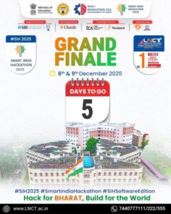 Smart India Hackathon 2025 – Grand Finale! Bas 5 din aur! Innovation, creativity aur problem-solving ka sabse bada manch LNCT Campus par taiyaar hai. 8–9