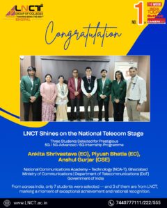 We are delighted to share that three students from LNCT — Ankita Shrivastava and Piyush Bhatia (EC), and Anshul Gurjar (CSE) — have been selected