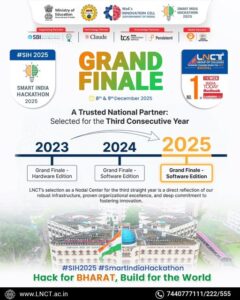 Lakshmi Narain College of Technology, Bhopal is honoured to host the Grand Finale of Smart India Hackathon 2025 – Software Edition as a Nodal Centre