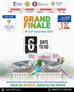 The countdown has begun! Just 6 days until India’s brightest innovators, coders and creators compete at the SIH 2025 Grand Finale hosted at LNCT. Hack