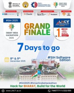 Smart India Hackathon 2025 – Grand Finale! Bas 5 din aur! Innovation, creativity aur problem-solving ka sabse bada manch LNCT Campus par taiyaar hai. 8–9