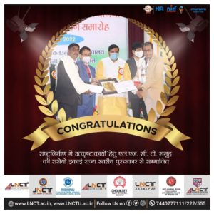 *राष्ट्रनिर्माण में उत्कृष्ट कार्यों हेतु एल.एन. सी. टी. समूह की रासेयो इकाई राज्य स्तरीय पुरुस्कार से सम्मानित ।* एल.एन. सी. टी. समूह के निदेशक प्रशासन