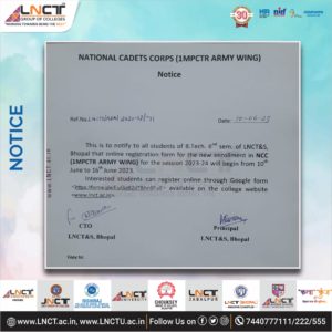 LNCT Group of College is one of the Top engineering college in Bhopal, MP and Central India. LNCT Synonymous with excellence in higher education with 32+ Years of Academic Excellence and Discipline.