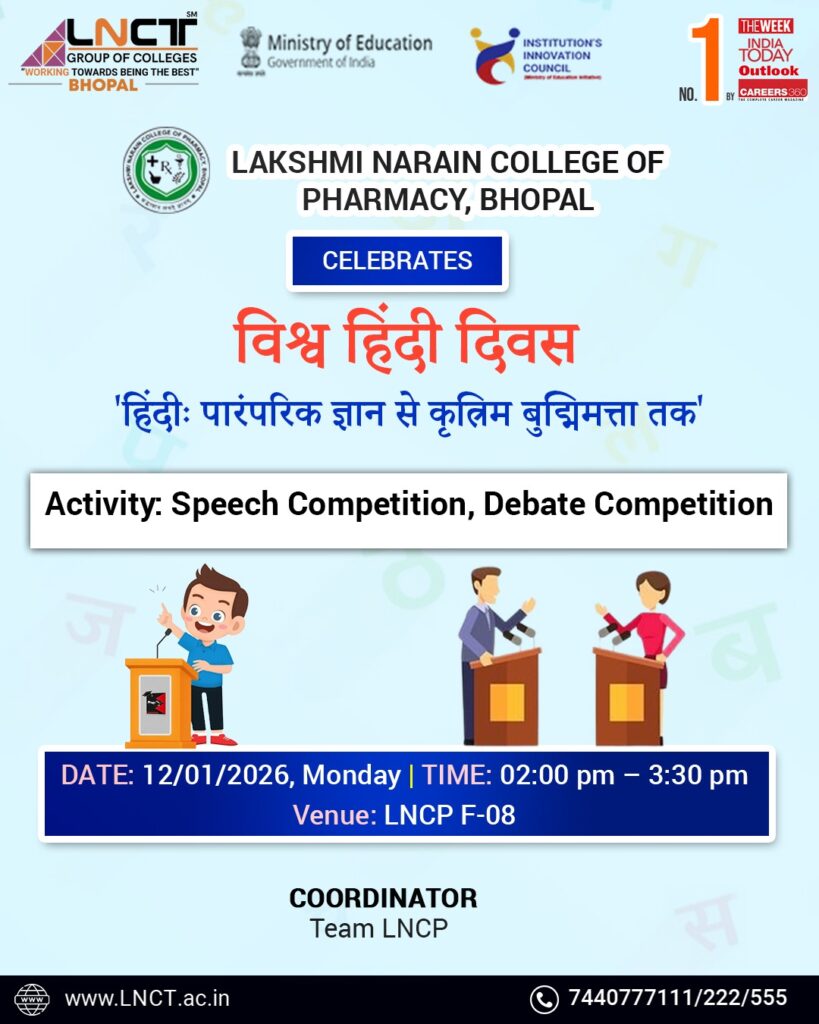 Lakshmi Narain College of Pharmacy, Bhopal proudly celebrates विश्व हिंदी दिवस & National Youth Day