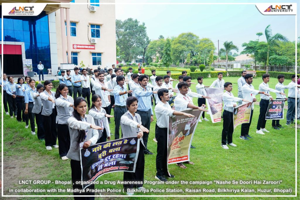 Under the campaign “Nashe Se Doori Hai Zaroori”, LNCT Group of Colleges, Bhopal, organized a Drug Awareness Program in collaboration with the Madhya Pradesh Police (Bilkhiriya Police Station, Raisan Road) at the LNCT Campus.
