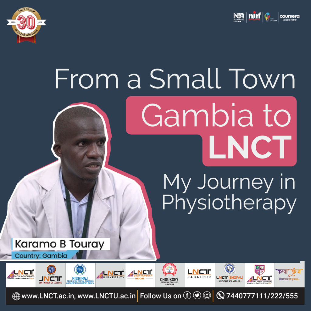 Let me take you on a journey through the significant events and pivotal moments that have shaped my dreams and goals, particularly during my time at LNCT (Lakshmi Narain College of Technology). Coming from a small town in Gambia, my unwavering passion for helping others and enhancing their quality of life fueled my pursuit of a career in physiotherapy.