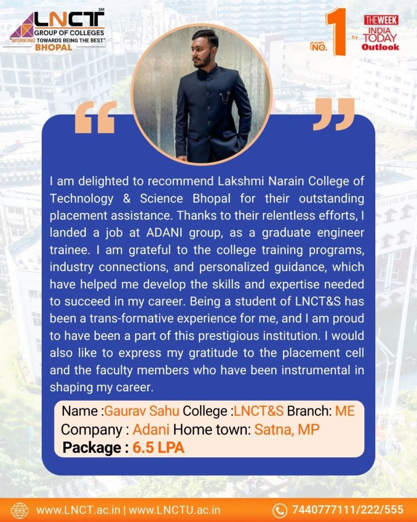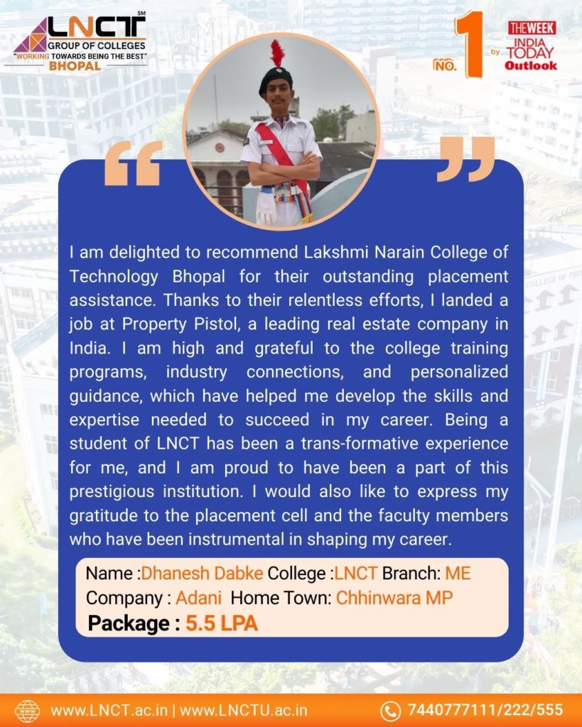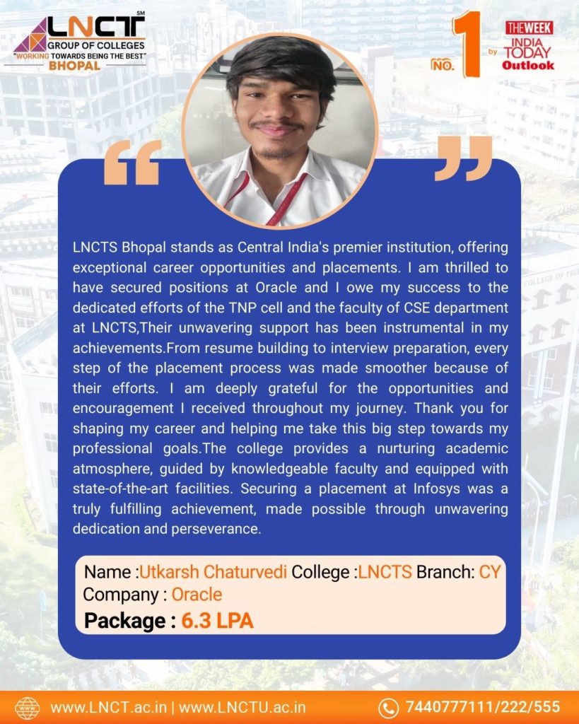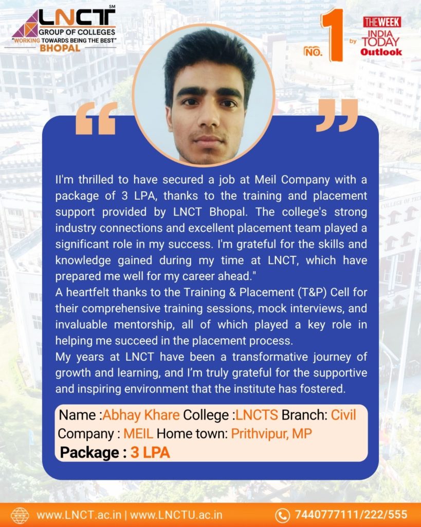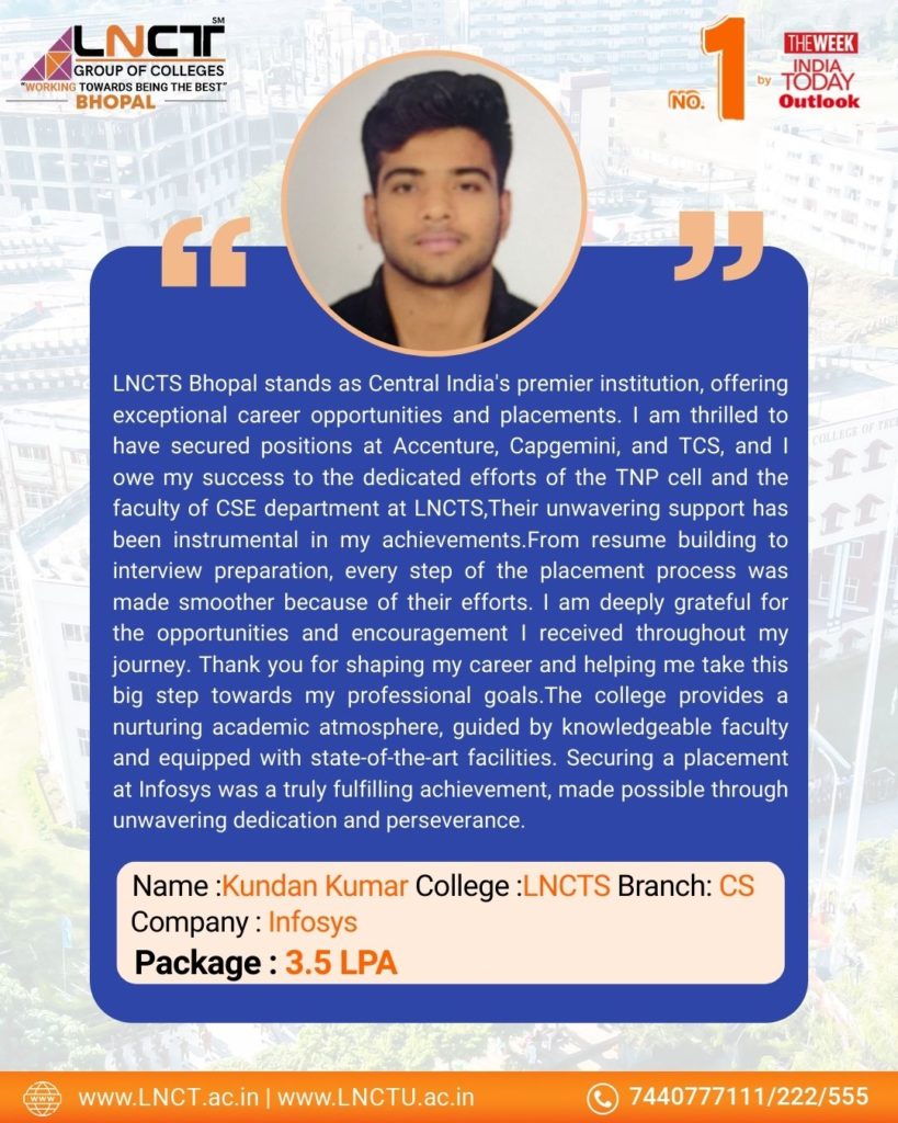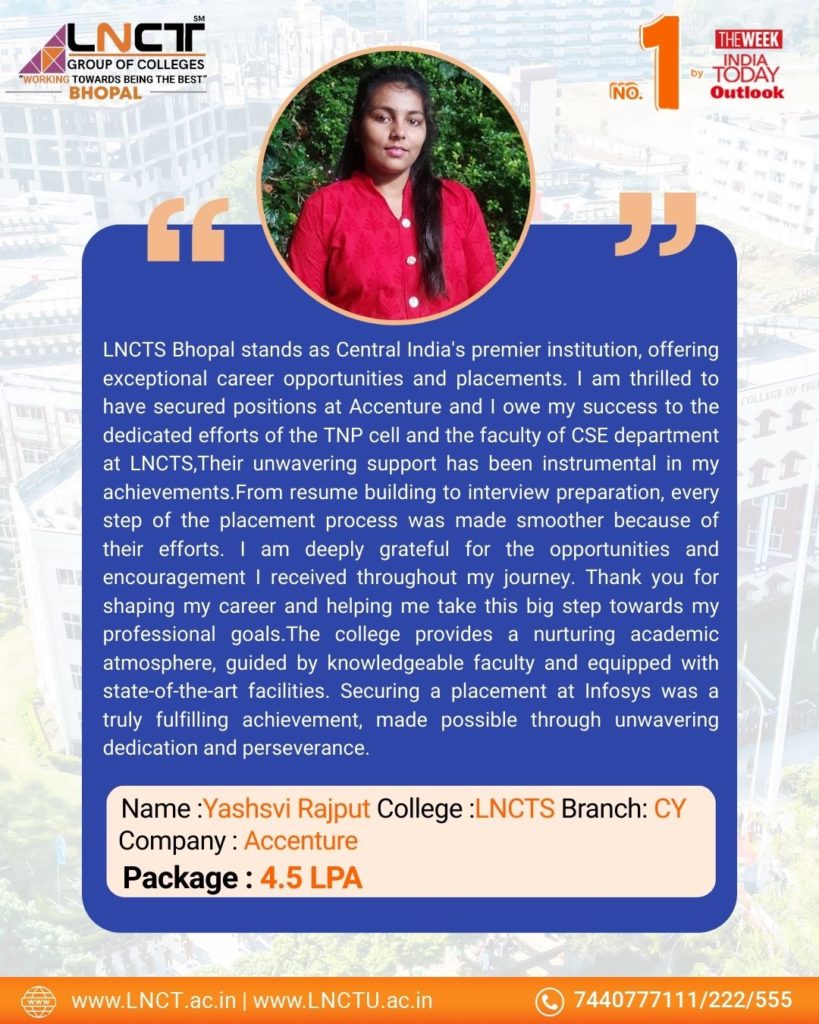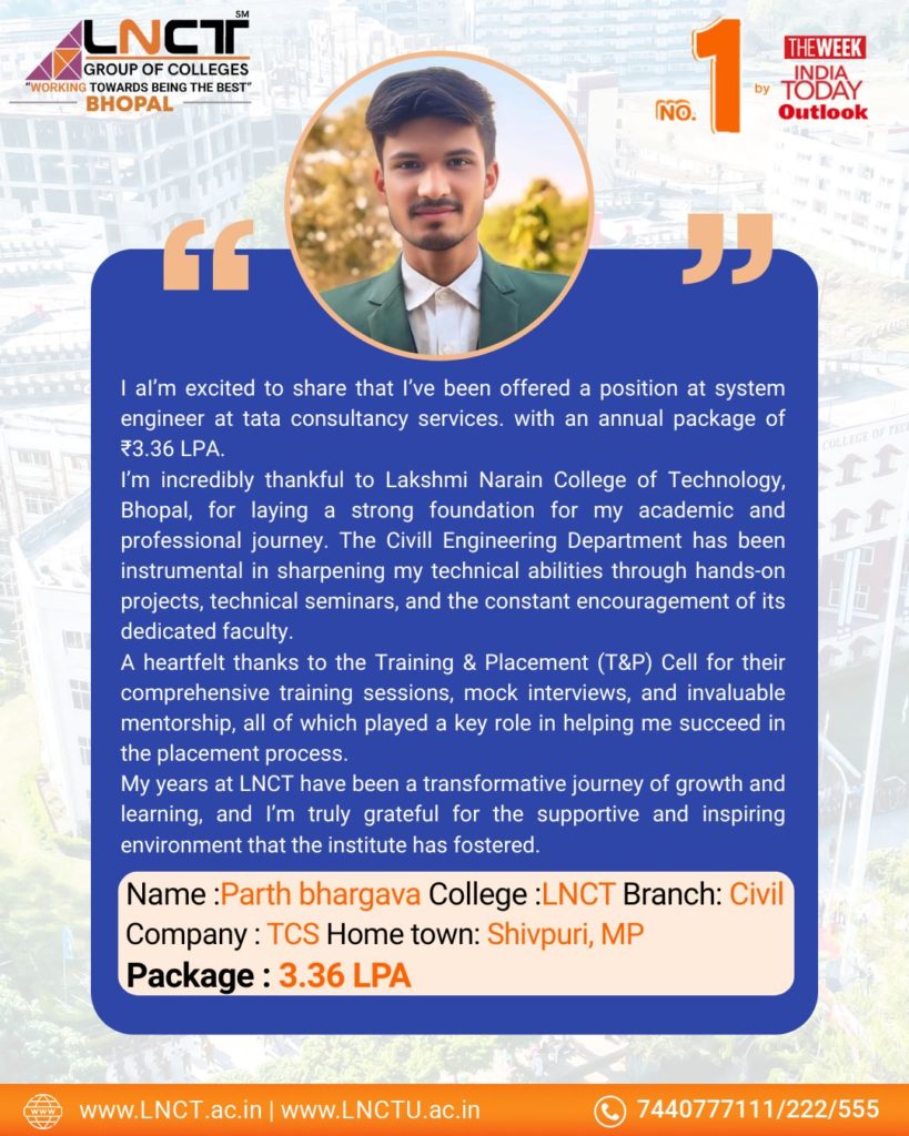 Tata Consultancy Services – TCS has done the first campus in LNCT in 2001 and we were the first college in country to sign Academic Interface Program for industry institute collaboration .LNCT also became the first private Engg.College in state to be Accredited by TCS in 2004 and further at B Level in 2012.TCS has been organizing a series of FDP and SDP in the college on regular basis in addition they also sponsor Best student and Best Projects award to 4 best projects.