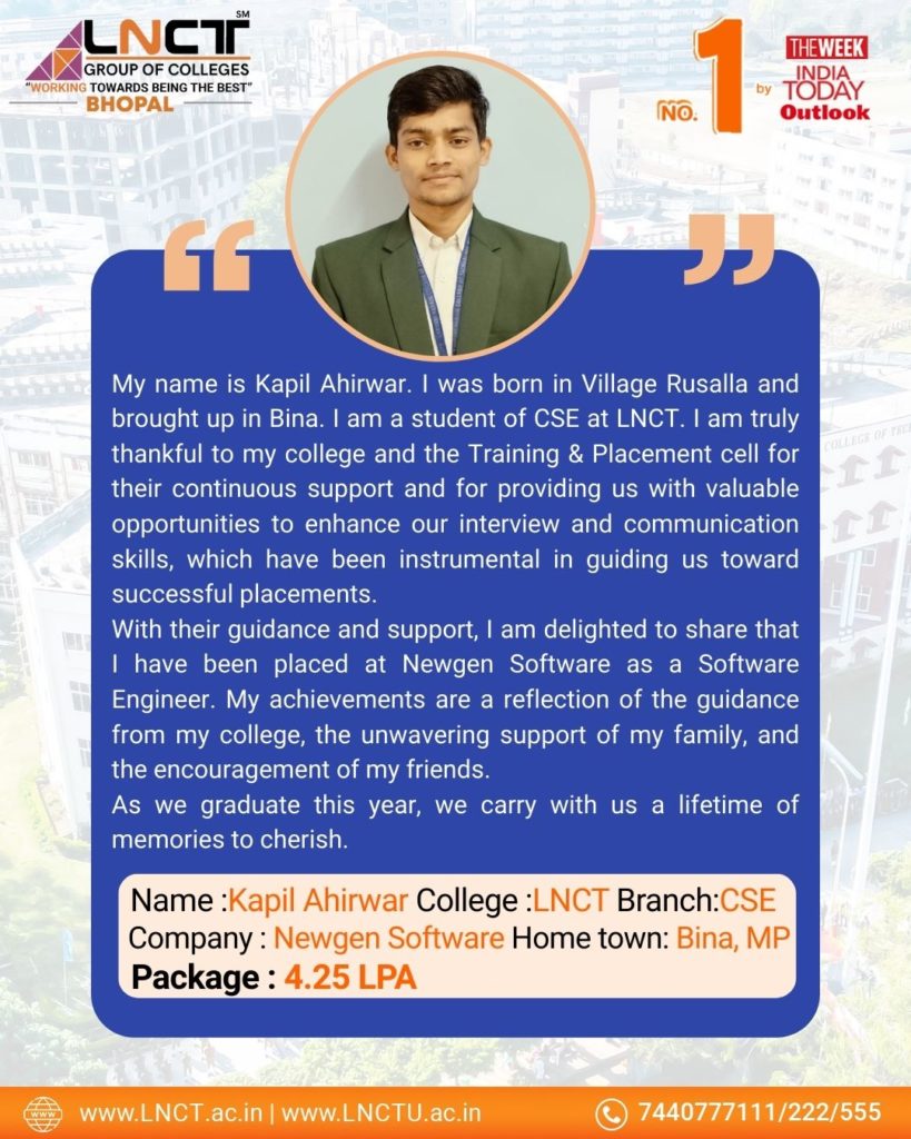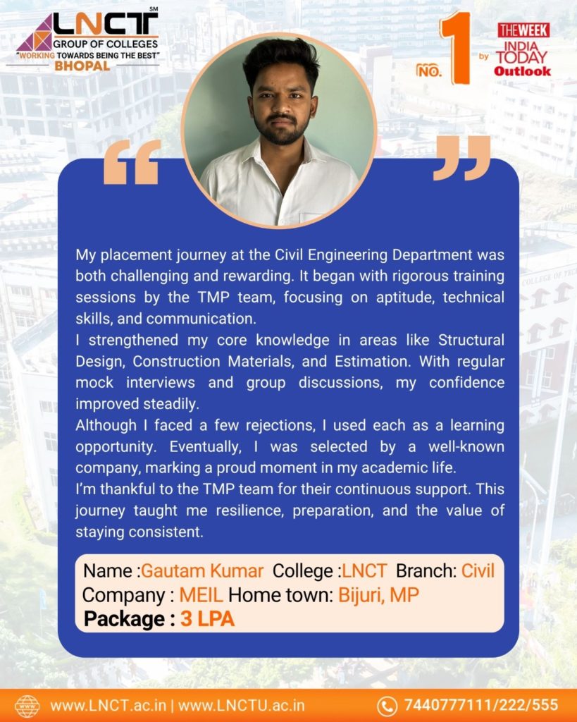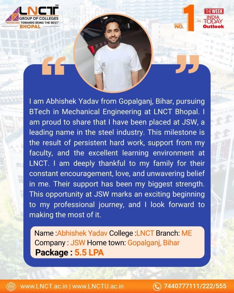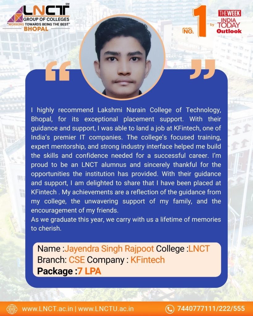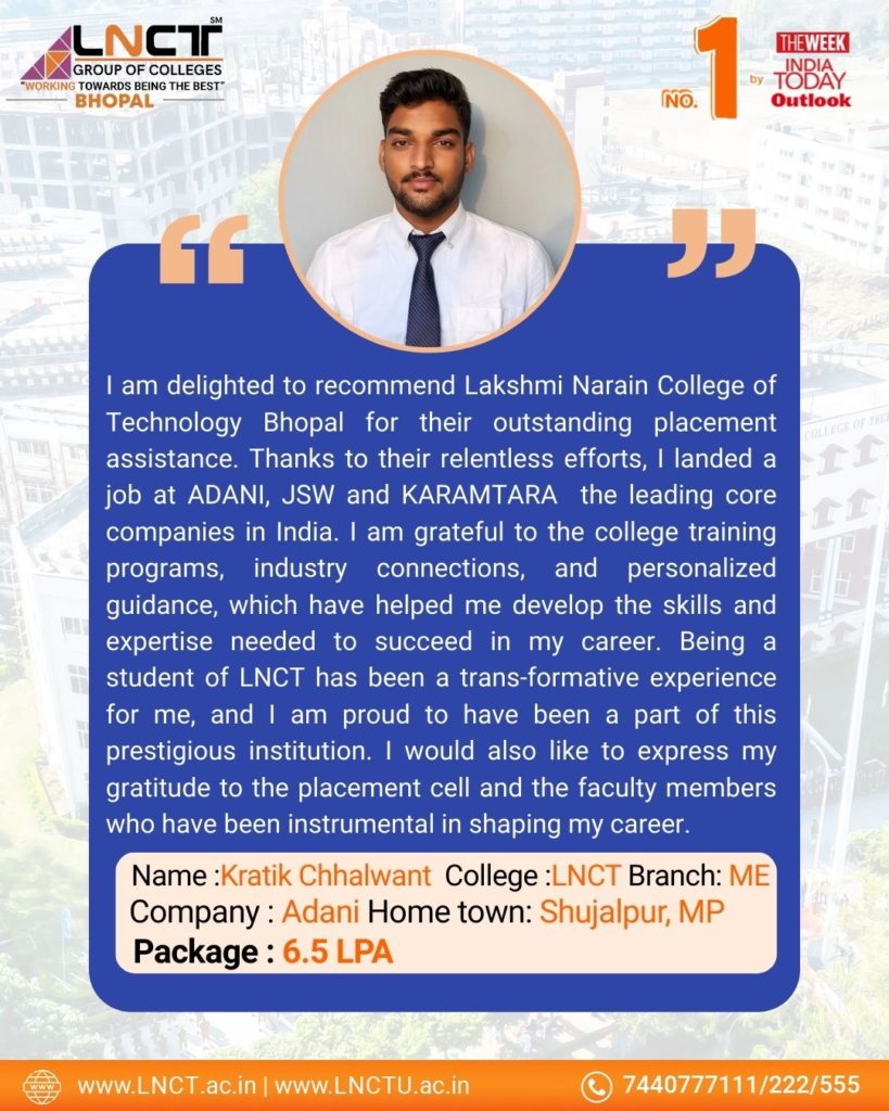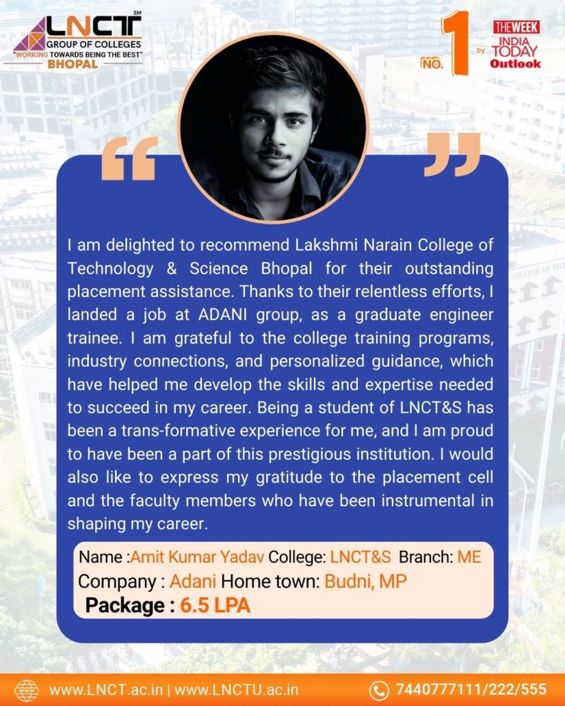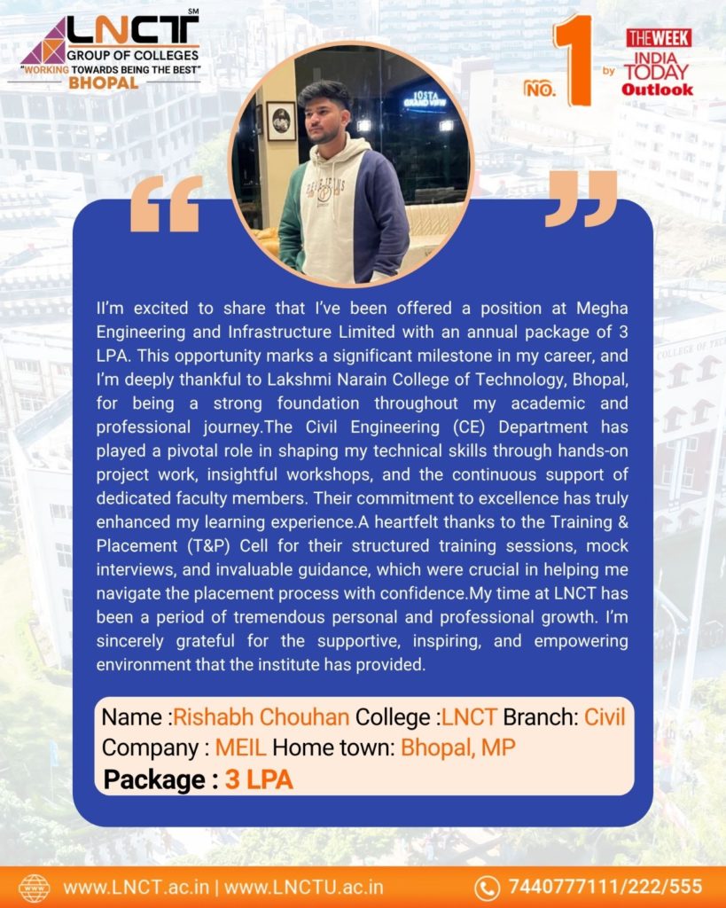 Tata Consultancy Services – TCS has done the first campus in LNCT in 2001 and we were the first college in country to sign Academic Interface Program for industry institute collaboration .LNCT also became the first private Engg.College in state to be Accredited by TCS in 2004 and further at B Level in 2012.TCS has been organizing a series of FDP and SDP in the college on regular basis in addition they also sponsor Best student and Best Projects award to 4 best projects.