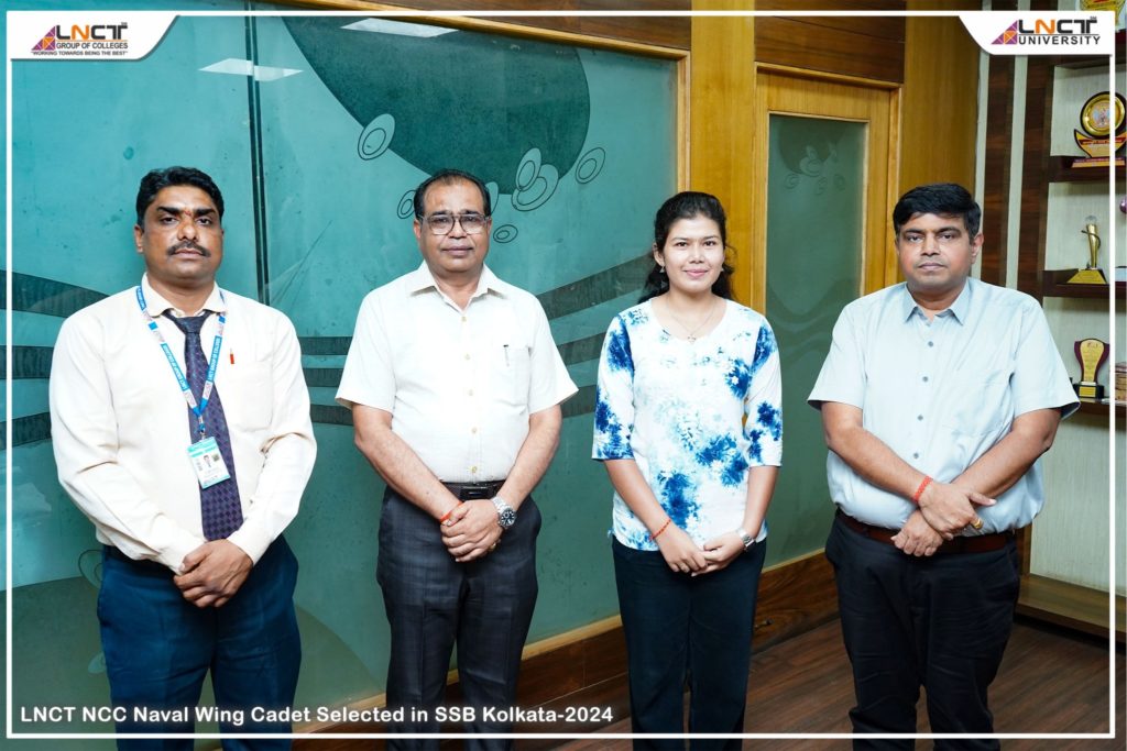 Ex Leading Cadet Nikita Pathariya NCC Naval Wing from the LNCT College 2024 Batch recently selected to join the Indian Naval Academy (INA) Ezhimala, kerala in SSC GS June-2025 Course, visited the college before their training. They were congratulated and given best wishes by Hon’ble Dr. Anupam Chouksey, Chancellor JNCT Professional University and Secretary of the LNCT Group of colleges and Dr. Ashok Kumar Rai, Director Administration, LNCT Bhopal and other dignitaries of LNCT College.