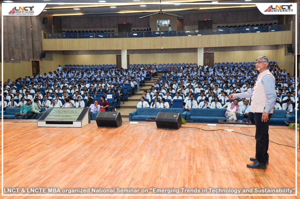 Lakshmi Narain College of Technology- MBA, Bhopal in association with LNCT University successfully organized the National Seminar on “Emerging Trends in Technology and Sustainability – Perspectives from Business, Sciences, Social Sciences & Humanities” on April 18, 2025. Under the esteemed leadership of Secretary of LNCT Group, Dr. Anupam Chouksey Ji, the seminar aimed to explore the intersection of innovation, sustainability, and interdisciplinary collaboration.