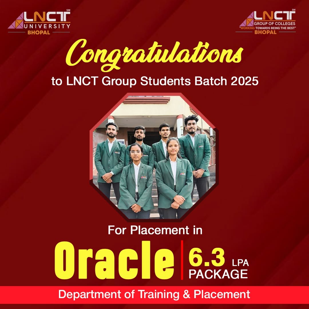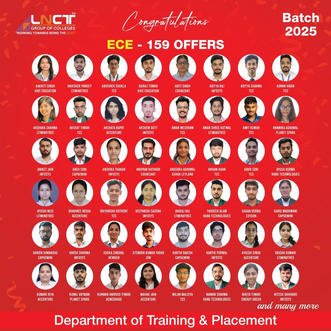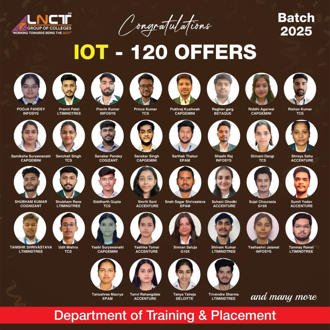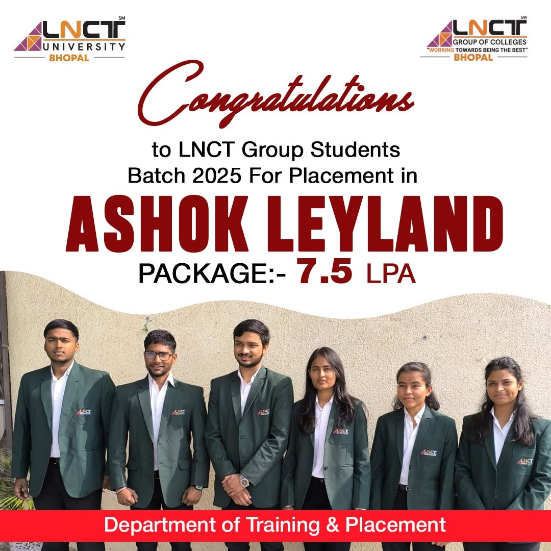 LNCT Group of Colleges yet again sets the benchmarks high by creating a record offering 3200+ jobs to students with around 650+ Dream company offers for batch 2022 – 2023.