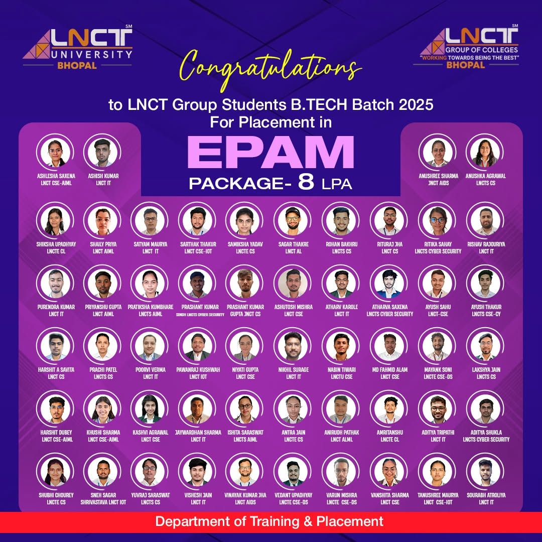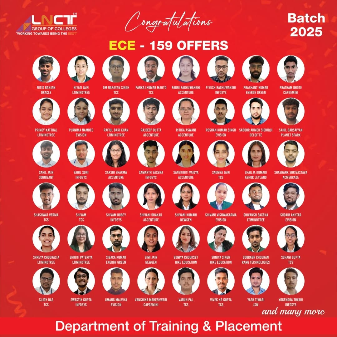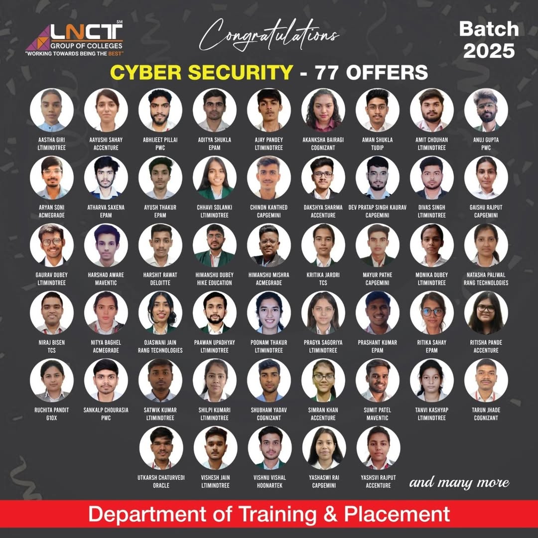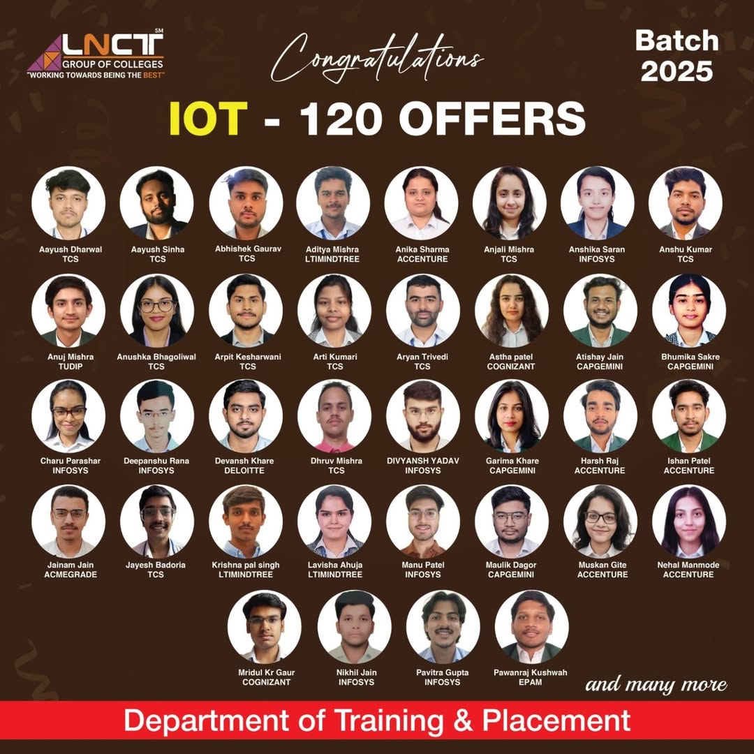 LNCT Group of Colleges yet again sets the benchmarks high by creating a record offering 3200+ jobs to students with around 650+ Dream company offers for batch 2022 – 2023.